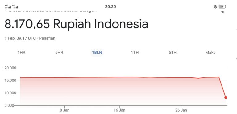 Tasikmalaya – Masyarakat dihebohkan dengan hasil pencarian Google yang menunjukkan nilai tukar rupiah sebesar Rp8.170,65 per dolar AS pada Sabtu (1/2/2025) sore. Informasi ini muncul ketika pengguna melakukan pengecekan konversi mata uang dengan kata kunci “USD to IDR” di Google pada pukul 17.47 WIB.