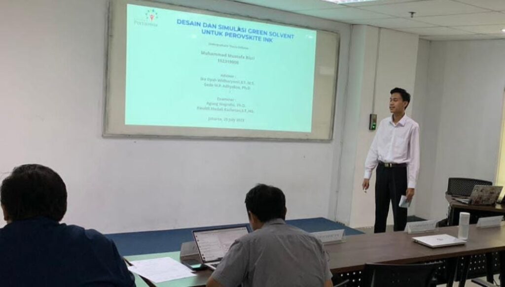 Melihat peluang ini, Muhammad Mustofa Bisri, alumni Teknik Kimia Universitas Pertamina (UPER) sekaligus putra daerah Bojonegoro, berhasil mengembangkan inovasi panel surya berbasis teknologi Perovskit Halida. Dengan menggunakan gamma-valerolactone (GVL) sebagai pelarut ramah lingkungan yang berasal dari limbah biomassa seperti tebu dan singkong, inovasi ini menawarkan solusi efisien dan berkelanjutan dalam produksi energi surya.