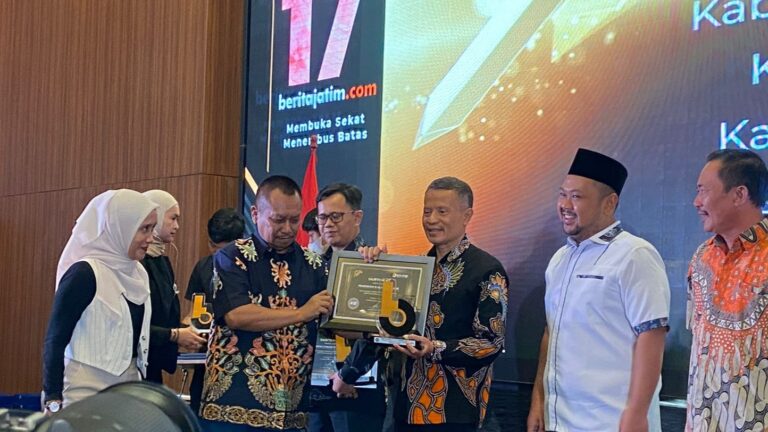 Blitar – Pemerintah Kabupaten Blitar kembali menorehkan prestasi di tingkat regional. Kali ini Pemkab. Blitar meraih penghargaan penghargaan kategori Website Pemda Tingkat II dalam Ajang Beritajatim Digital Award 2023. Penyerahan penghargaan yang diterima Bupati Blitar yang diwakili Asisten Perekonomian dan Pembangunan, Ir. M Krisna Triatmanto, M. Si. Penghargaan ini digelar di Ballroom Lt 16 Whiz Luxe Hotel Spazio Tower Surabaya, Selasa (23/5/2023).