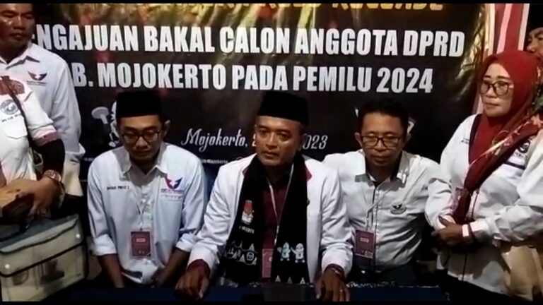 Mojokerto – Partai Persatuan Indonesia (Perindo) Kabupaten Mojokerto mengajukan bakal calon legislatif (Bacaleg) DPRD Kabupaten pemilihan umum 2024. Pendaftaran resmi dilakukan oleh Perindo di Kantor Komisi Pemilihan Umum Daerah (KPUD) Kabupaten Mojokerto, Minggu (14/5/2023).