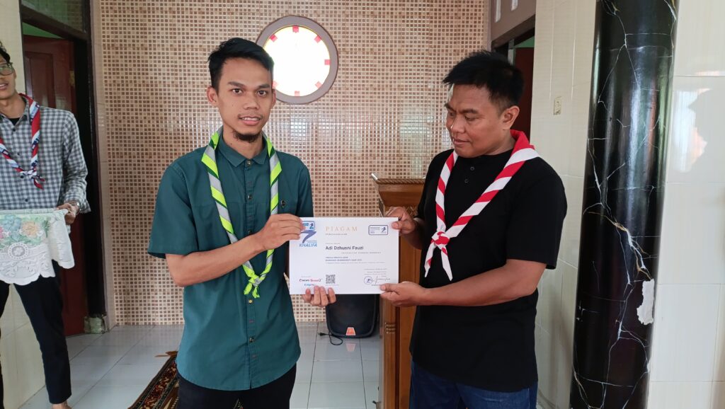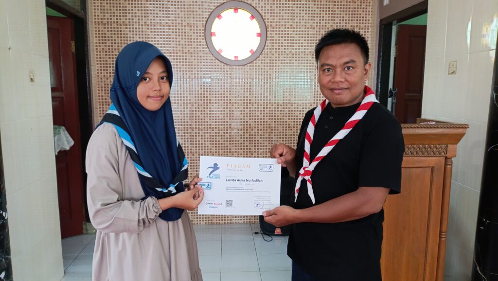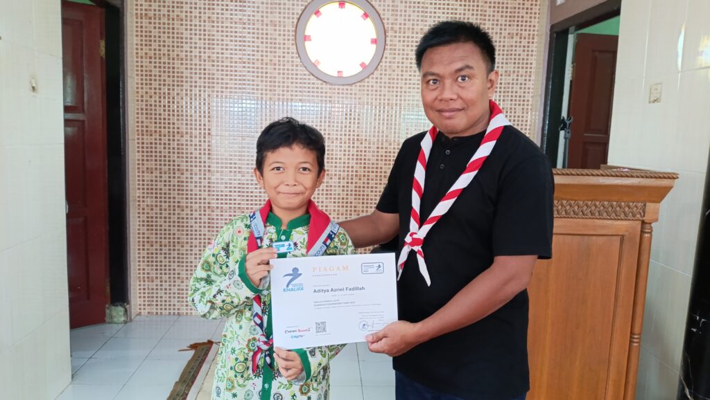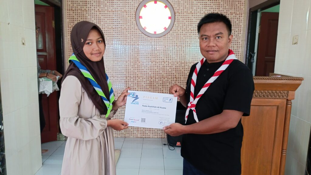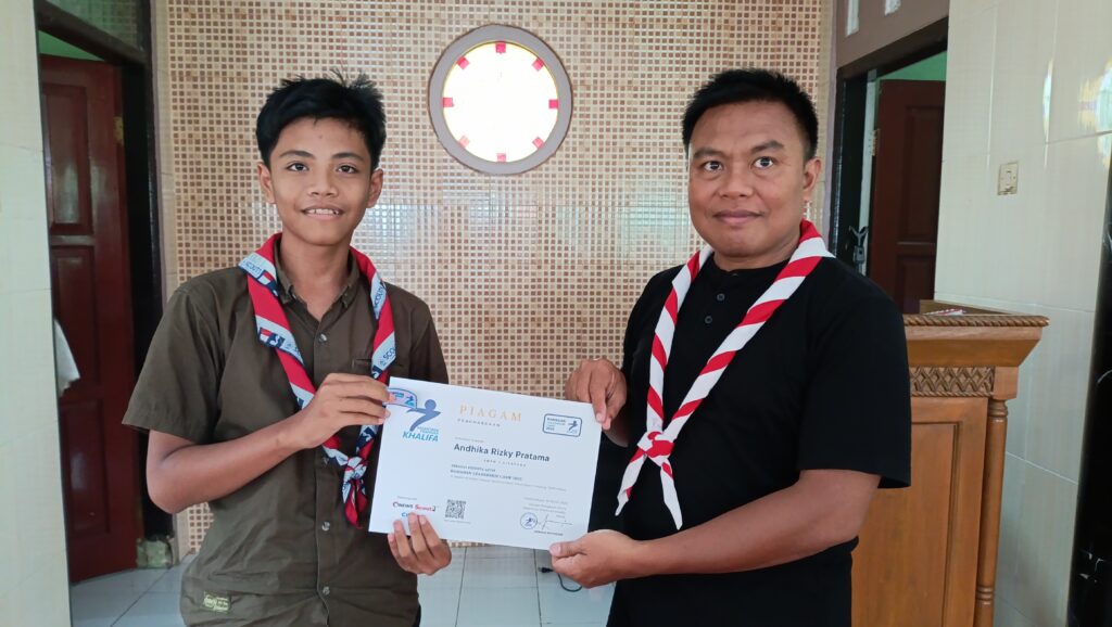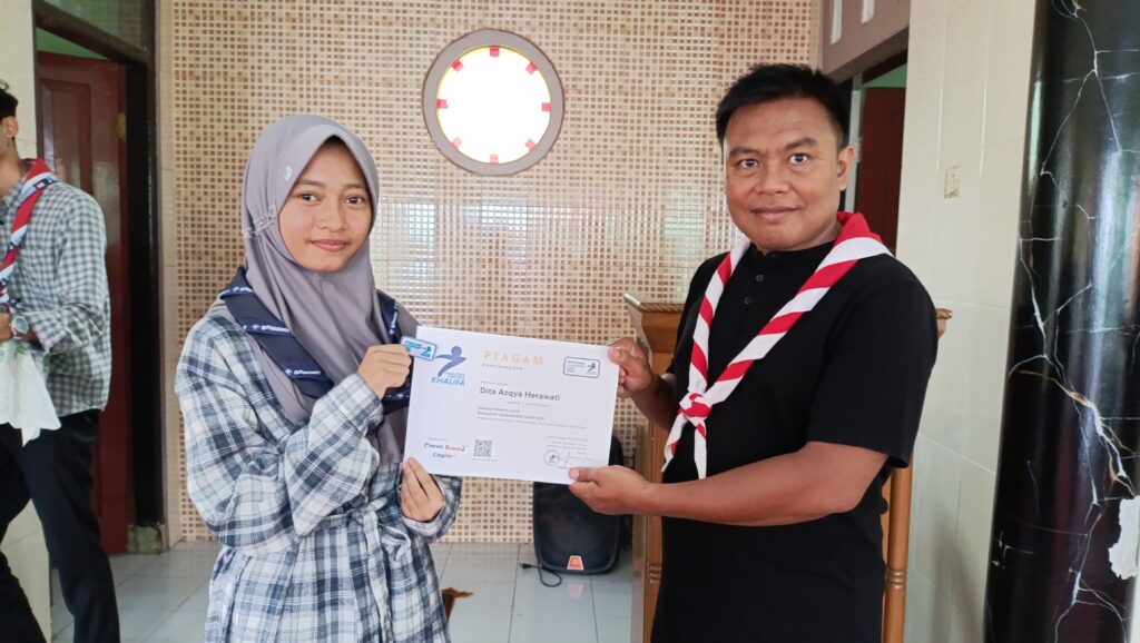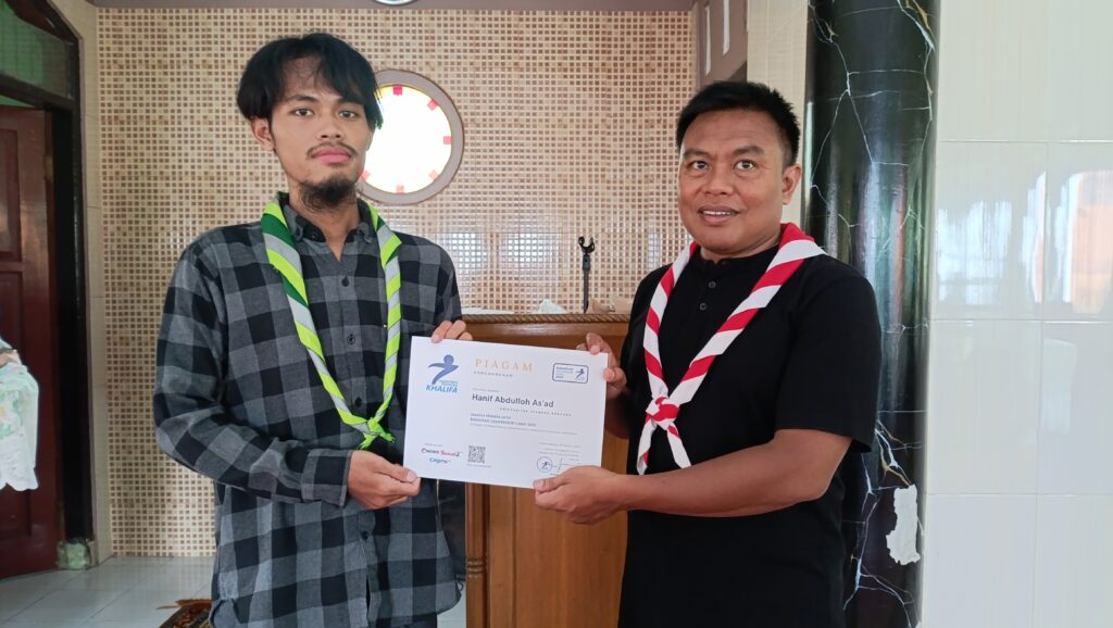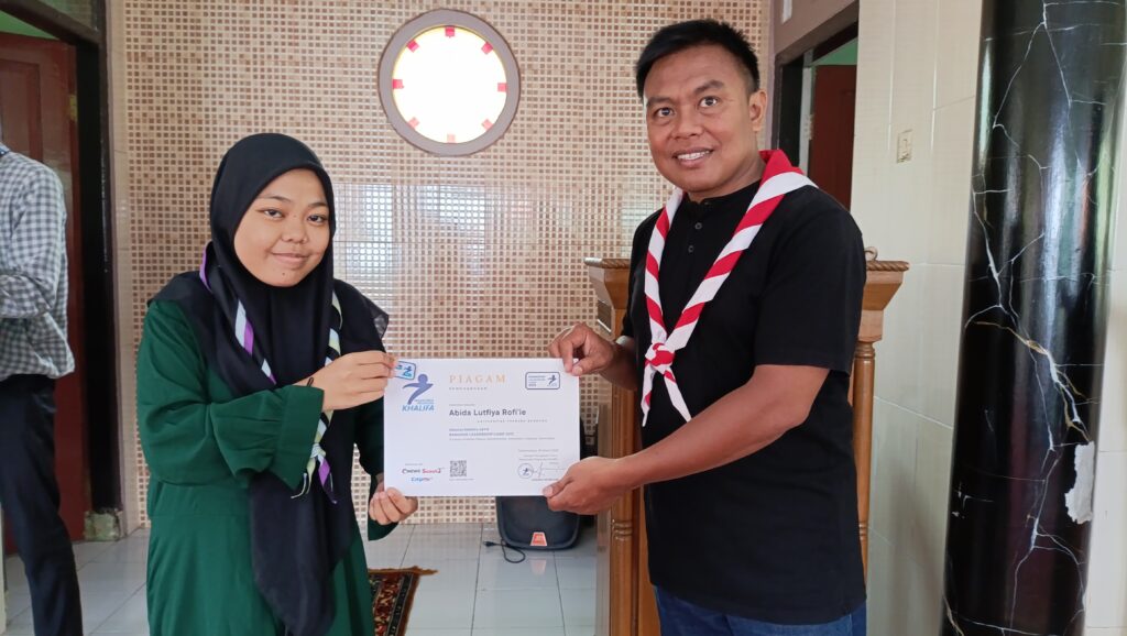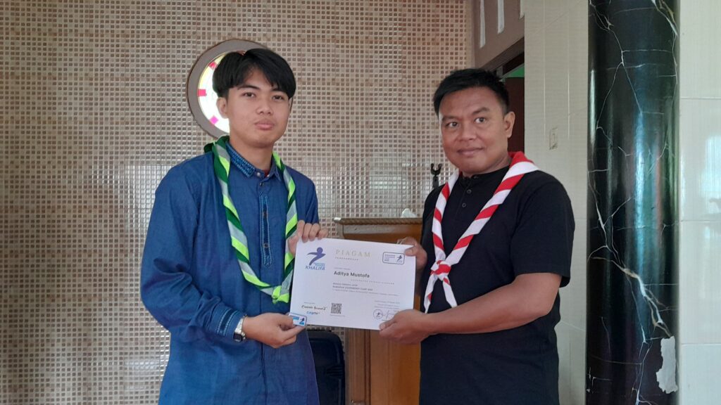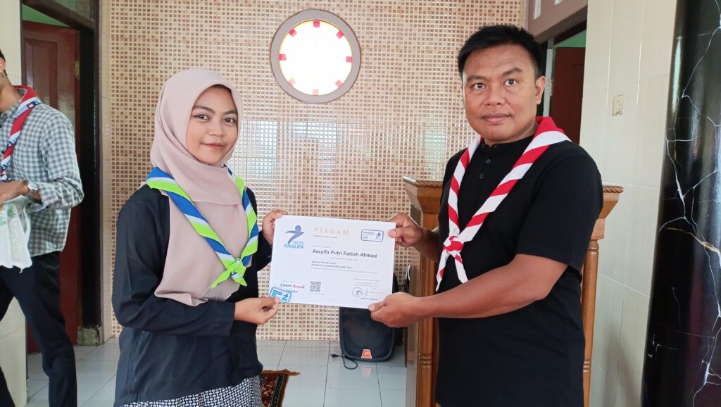 Apresiasi atas partisipasi dan semangat belajar, Pesantren Pramuka Khalifa menyerahkan piagam kepada peserta yang telah menyelesaikan pelatihan kepemimpinan selama bulan Ramadan.