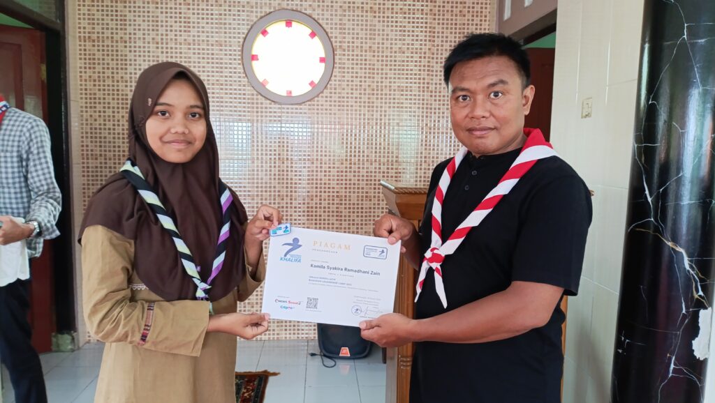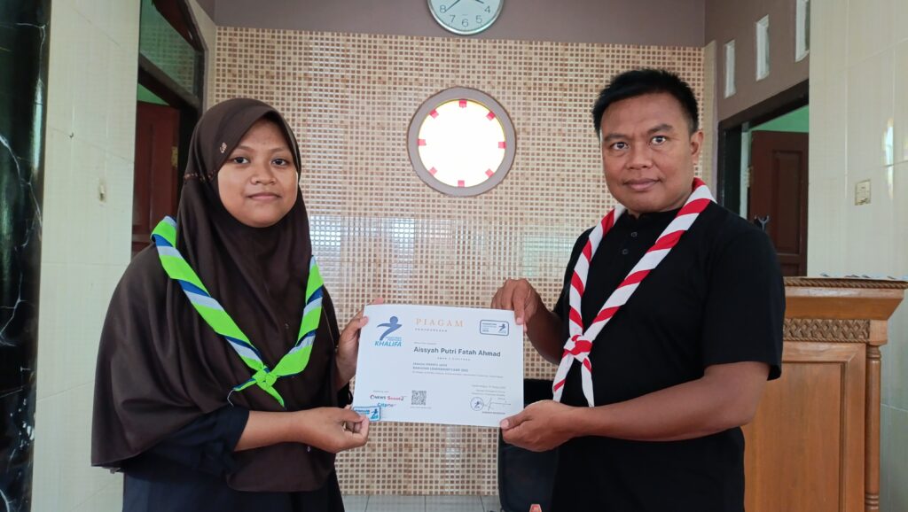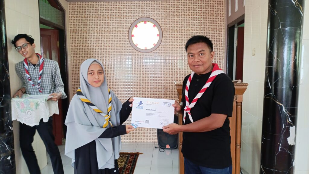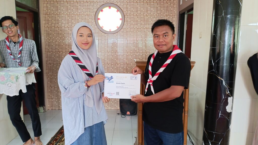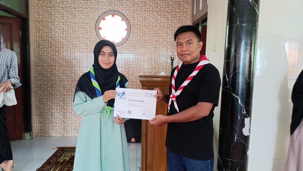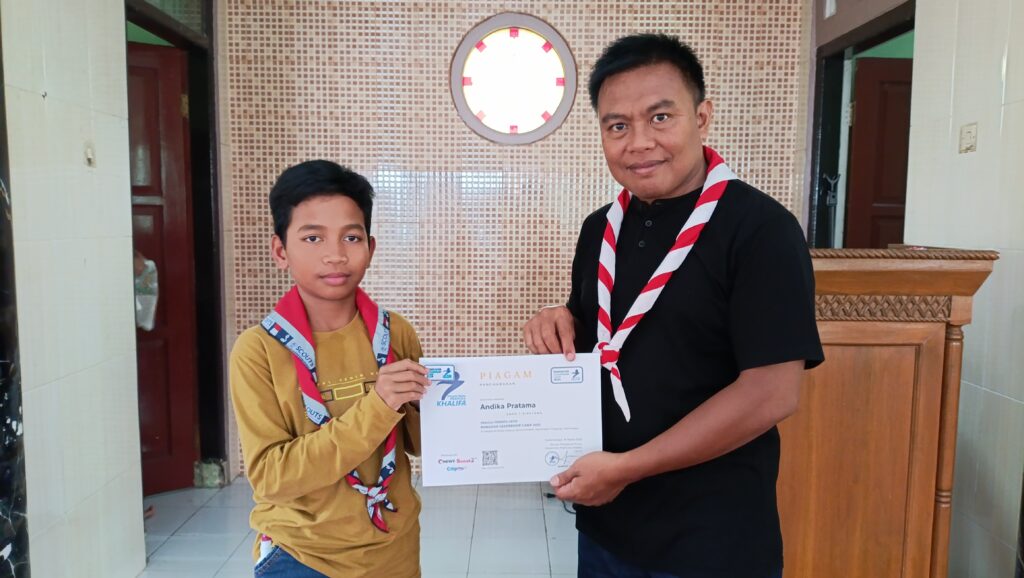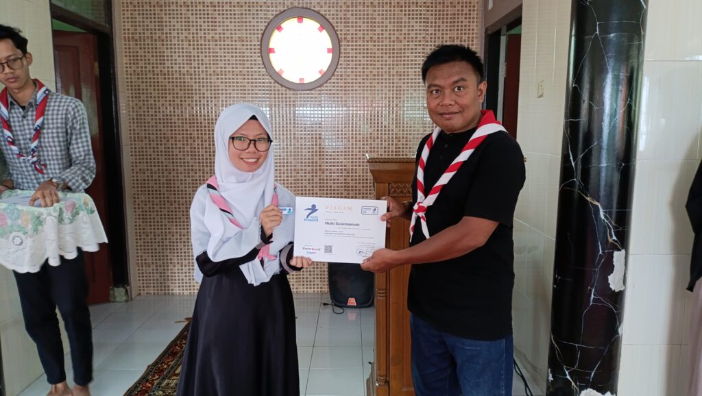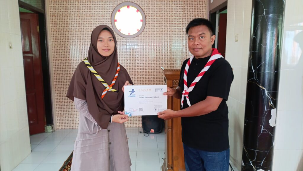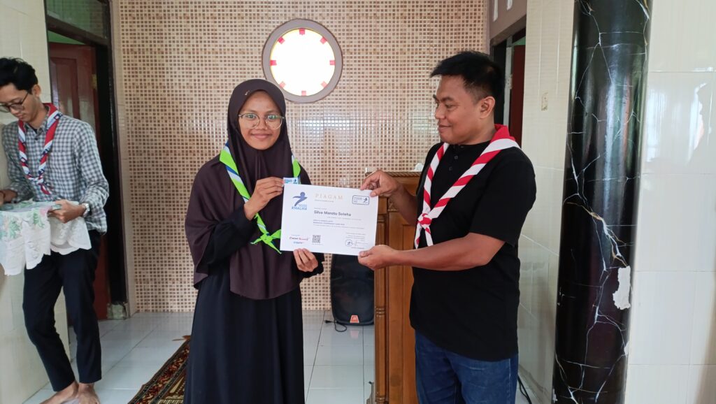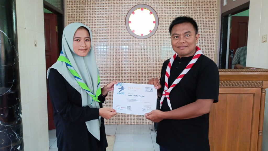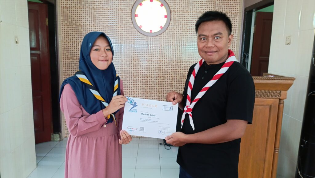 Apresiasi atas partisipasi dan semangat belajar, Pesantren Pramuka Khalifa menyerahkan piagam kepada peserta yang telah menyelesaikan pelatihan kepemimpinan selama bulan Ramadan.